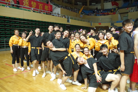 規(guī)定組表演完成,自由舞的比拼正式開始。我院自由組隊(duì)身著干練清爽的黑色短褲,搭配女生黃色上衣和充滿活力的雙馬尾,在第11順位登場表演。隊(duì)員們走位流暢、創(chuàng)意十足、動(dòng)感舞姿中混合著高難度的波浪式跳躍,充分體現(xiàn)了自由舞的激情與奔放。舞蹈結(jié)束,觀眾席響起潮水般的掌聲。