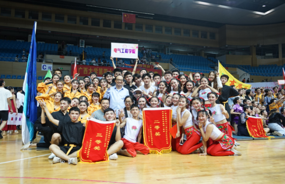表演結(jié)束,裁判宣布結(jié)果:我院啦啦操隊(duì)勇奪規(guī)定組二等獎(jiǎng)和自由組三等獎(jiǎng)。羅廷榮副校長給隊(duì)員們頒發(fā)錦旗,雙豐院長與啦啦操隊(duì)員親切合影。