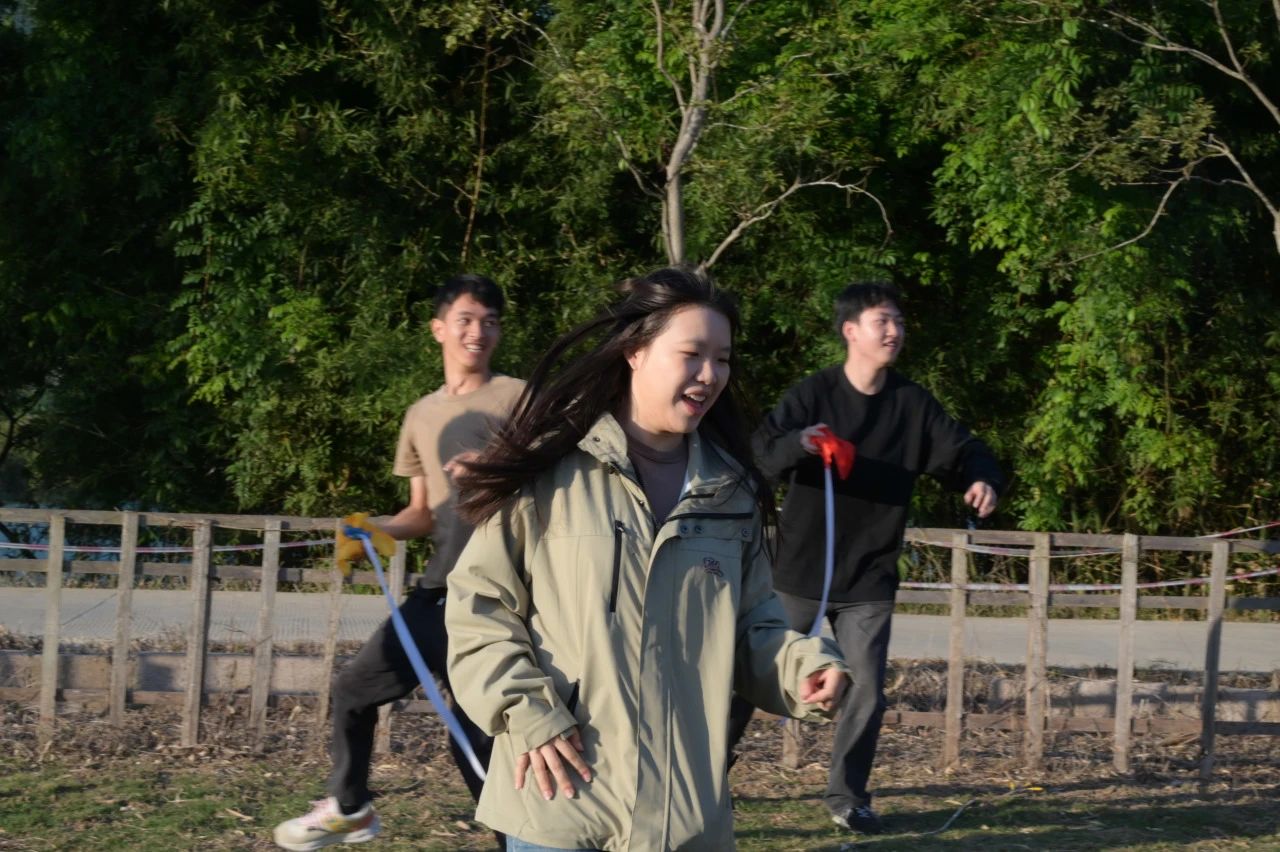 團日活動首先以“繡球擊鼓”活動拉開序幕。繡球和銅鼓都是廣西壯鄉(xiāng)具有代表性的民俗特產(chǎn)。它們的有趣碰撞給師生們生動形象地展現(xiàn)了壯族人民的歌舞人生。同時,在激烈的比賽中,來自不同民族的同學(xué)們團結(jié)互助,爭分奪秒,體現(xiàn)了新時代青年學(xué)生昂揚拼搏、樂觀向上的精神面貌。