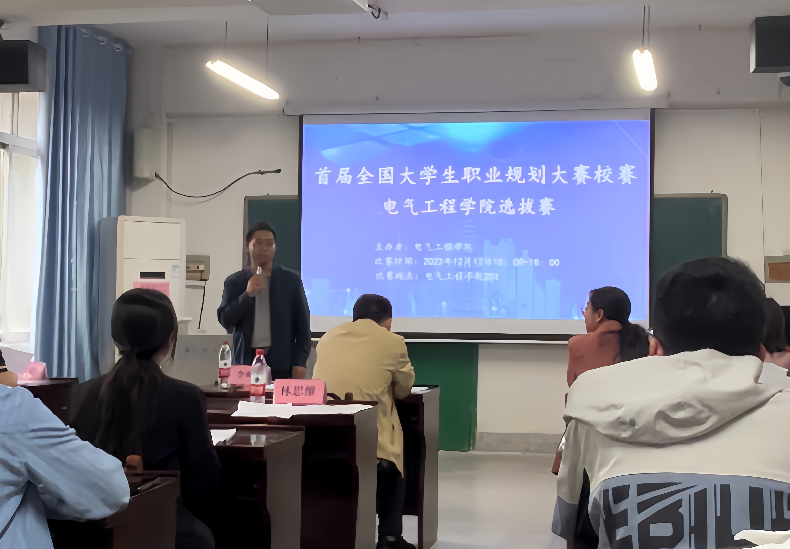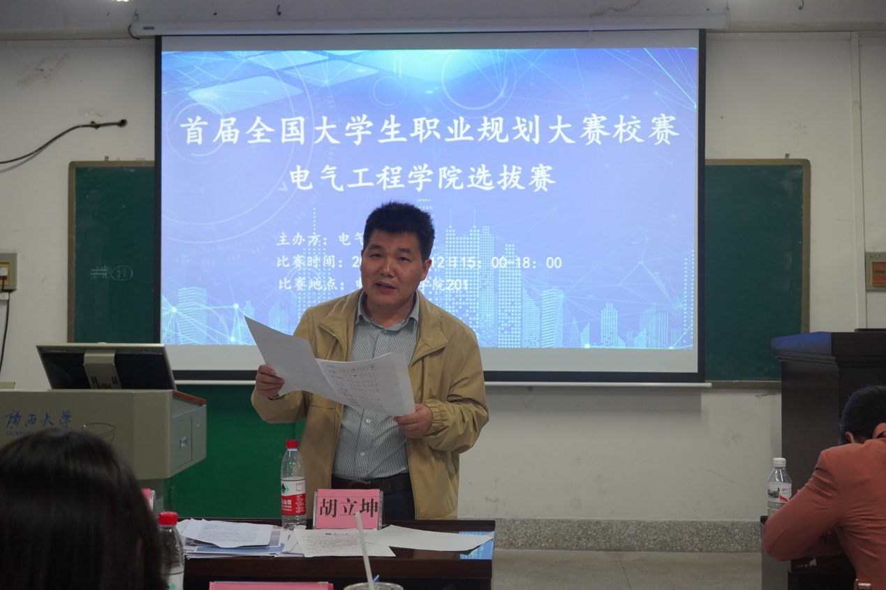 為了引導(dǎo)大學(xué)生樹(shù)立正確的成才觀、就業(yè)觀和擇業(yè)觀,科學(xué)合理規(guī)劃學(xué)業(yè)與職業(yè)發(fā)展,提升就業(yè)競(jìng)爭(zhēng)力,12月12日下午,我院在學(xué)院201教室舉辦首屆全國(guó)大學(xué)生職業(yè)規(guī)劃大賽校賽院級(jí)選拔賽。我校教務(wù)處教師教學(xué)發(fā)展中心專(zhuān)職副主任胡立坤,我院副院長(zhǎng)李畸勇,院團(tuán)委副書(shū)記蔣冬連,輔導(dǎo)員李娟、李楠、李浩銘、何惠榕出席活動(dòng)并擔(dān)任評(píng)委。