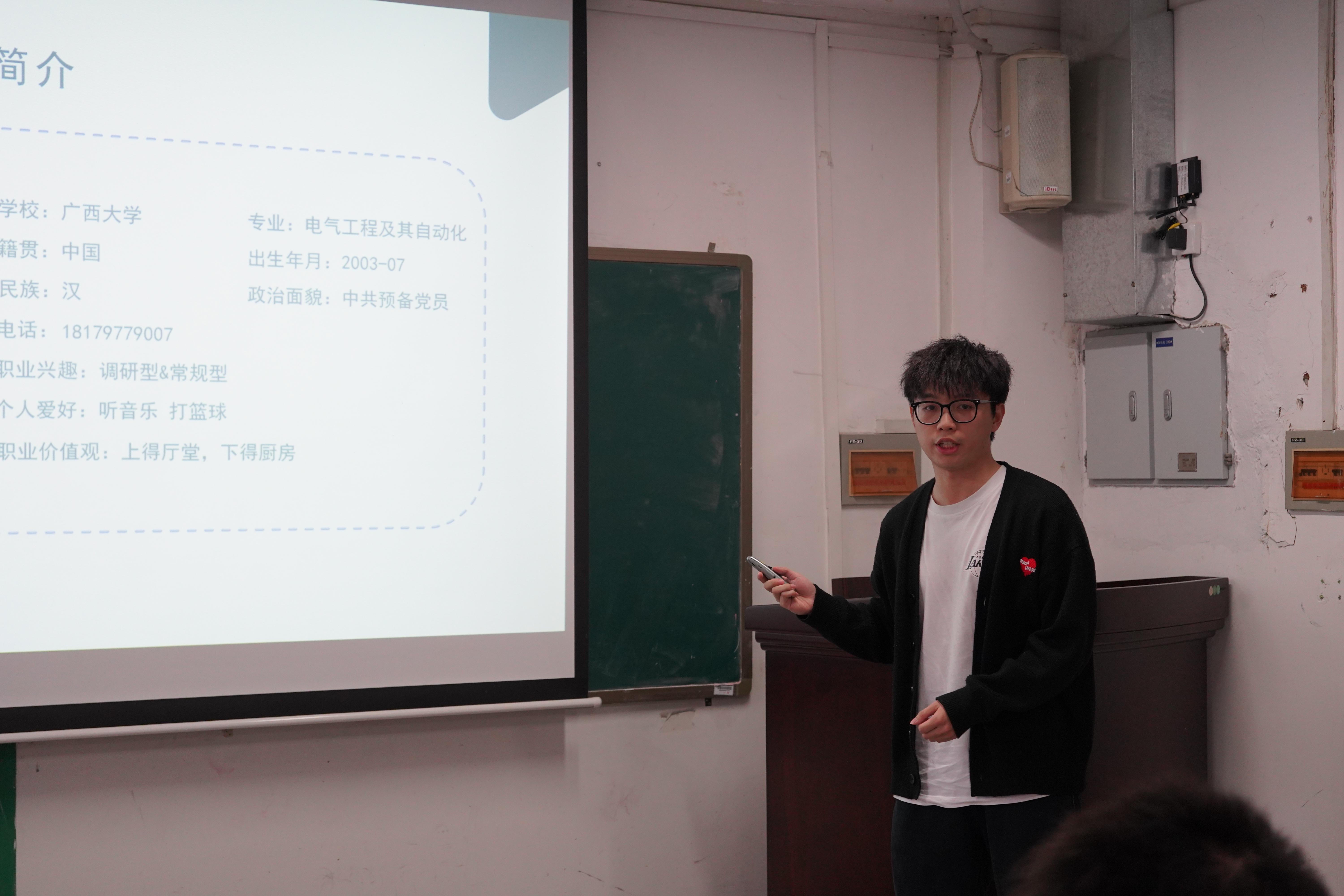 在鐘豐蔚同學(xué)的展示中,他通過(guò)自我認(rèn)知、環(huán)境分析、SWOT分析、職業(yè)定位、實(shí)施方案向大家介紹了專(zhuān)業(yè)具體的職業(yè)規(guī)劃,展現(xiàn)出全面的綜合能力。他希望可以立足現(xiàn)在,放眼未來(lái),秉持“為祖國(guó)健康工作五十年”的愛(ài)國(guó)之心,做一名既懷抱夢(mèng)想又腳踏實(shí)地的電氣人。