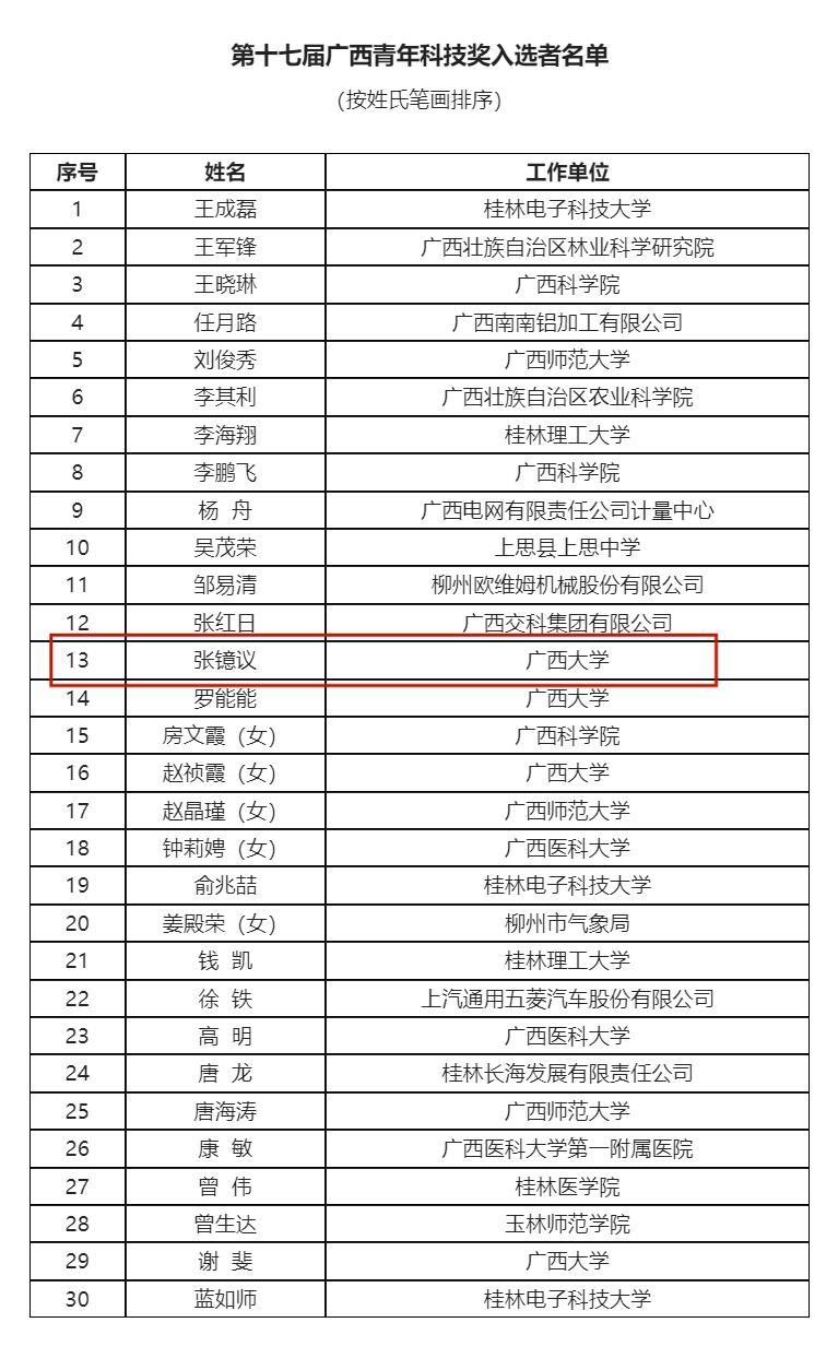 近日,廣西壯族自治區(qū)科學(xué)技術(shù)協(xié)會第九次代表大會在南寧召開,會上對30名第十七屆廣西青年科技獎獲得者進行了表彰。廣西壯族自治區(qū)黨委書記劉寧,中國科協(xié)專職副主席、書記處書記孟慶海等共同為獲獎?wù)哳C獎。其中,我院副院長張鐿議教授獲此殊榮。 張鐿議教授,電氣工程學(xué)院副院長,學(xué)院高電壓與絕緣技術(shù)研究領(lǐng)域帶頭人,主要研究方向為電力裝備安全防護與絕緣材料,入選自治區(qū)優(yōu)秀專家和八桂青年學(xué)者,主持國家自然科學(xué)基金面上項目、廣西重點研發(fā)計劃、廣西杰出青年基金等項目。近五年,他發(fā)表50余篇SCI論文,授權(quán)21項專利,并編寫5項國家/電力行業(yè)標(biāo)準。成果支撐其以第一完成人榮獲廣西技術(shù)發(fā)明一等獎、日內(nèi)瓦國際發(fā)明展金獎、中國產(chǎn)學(xué)研合作創(chuàng)新獎等多項大獎。 據(jù)悉,廣西青年科技獎評選由自治區(qū)黨委組織部、自治區(qū)人社廳、自治區(qū)科協(xié)、共青團廣西區(qū)委共同組織,每兩年評選一次,每次授獎不超過30人。本屆評選旨在激發(fā)廣西廣大青年科技工作者的創(chuàng)新創(chuàng)造活力,引導(dǎo)他們堅守“四個面向”的原則,積極投身于經(jīng)濟建設(shè)和科技創(chuàng)新的主戰(zhàn)場,在新發(fā)展階段中精準把握機遇、全面貫徹落實新發(fā)展理念、積極融入新發(fā)展格局,以實際行動為廣西的科技自立自強和高質(zhì)量發(fā)展貢獻智慧和力量,建功立業(yè),創(chuàng)新爭先。