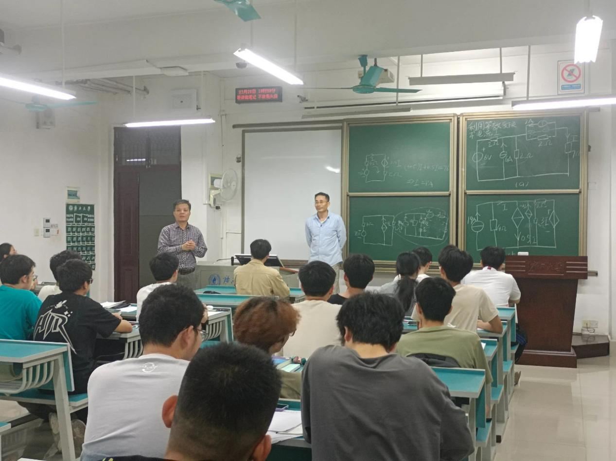 為扎實(shí)做好學(xué)院“抓學(xué)風(fēng)、促教風(fēng)”專項(xiàng)行動(dòng),深入了解學(xué)院“2-2-N 強(qiáng)基蓄能”專項(xiàng)學(xué)業(yè)幫扶活動(dòng)開(kāi)展落實(shí)情況,3月28日晚上,我院黨委書記梁志堅(jiān)、輔導(dǎo)員李娟老師和部分兼職輔導(dǎo)員到第六教學(xué)樓檢查我院23級(jí)本科生晚自習(xí)和“2-2-N 強(qiáng)基蓄能”專項(xiàng)學(xué)業(yè)幫扶開(kāi)展情況。 晚上7:30,梁志堅(jiān)書記巡視了我院所有晚自習(xí)教室,了解同學(xué)們晚自習(xí)學(xué)習(xí)內(nèi)容、紀(jì)律情況。梁書記在查看各班級(jí)晚自習(xí)情況時(shí),同學(xué)們正在練習(xí)《電路原理》課程的“每日一題”習(xí)題,“每日一題”活動(dòng)正是“2-2-N 強(qiáng)基蓄能”專項(xiàng)學(xué)業(yè)幫扶活動(dòng)的一項(xiàng)內(nèi)容。梁書記在課堂上還與參與活動(dòng)的電工與實(shí)驗(yàn)黨支部教師、學(xué)生黨員、學(xué)生班主任助理進(jìn)行交流,了解此項(xiàng)幫扶活動(dòng)的方式和效果。 走訪過(guò)后,梁志堅(jiān)書記對(duì)這項(xiàng)由電工與實(shí)驗(yàn)教工黨支部與本科生黨支部合作開(kāi)展的以黨建促學(xué)風(fēng)的“2-2-N 強(qiáng)基蓄能”學(xué)業(yè)專項(xiàng)幫扶活動(dòng)予以了肯定。他希望同學(xué)們端正學(xué)習(xí)態(tài)度,制定好學(xué)習(xí)規(guī)劃,利用好晚自習(xí),提高學(xué)習(xí)效率,不斷提升自我管理和自我學(xué)習(xí)的能力,為創(chuàng)建學(xué)院優(yōu)良學(xué)風(fēng)做貢獻(xiàn)。 據(jù)悉,為加強(qiáng)學(xué)院學(xué)風(fēng)建設(shè),激發(fā)電氣學(xué)生自我學(xué)習(xí)的內(nèi)生動(dòng)力,及早抓實(shí)學(xué)院本科教育教學(xué)的“兩率”問(wèn)題,學(xué)院黨委開(kāi)展了系列“抓學(xué)風(fēng)、促教風(fēng)”專項(xiàng)行動(dòng),對(duì)大一學(xué)生統(tǒng)一晚自習(xí)時(shí)間提前半個(gè)小時(shí),對(duì)高年級(jí)學(xué)習(xí)困難學(xué)生也要求集中晚自習(xí)。針對(duì)學(xué)生的課程學(xué)習(xí)痛點(diǎn),協(xié)調(diào)教工支部與學(xué)生支部開(kāi)展“2-2-N 強(qiáng)基蓄能”專項(xiàng)幫扶活動(dòng)。針對(duì)大一學(xué)生剛學(xué)習(xí)《電路原理》課程時(shí)種種的不適應(yīng),由支部黨員老師每天晚自習(xí)前發(fā)布一道《電路理論》習(xí)題,進(jìn)行“每日一題”練習(xí)。由學(xué)生代表講解解題思路,支部教師和學(xué)生黨員或班助點(diǎn)評(píng)講解。該活動(dòng)充分發(fā)揮黨員師生的先鋒模范作用、以及同學(xué)間的朋輩幫扶情義。下一步,還將開(kāi)展高年級(jí)學(xué)困生的學(xué)業(yè)幫扶。
