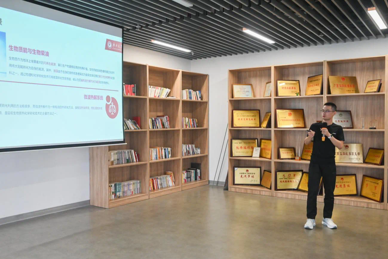 會(huì)議開(kāi)始,李道洋副書(shū)記向來(lái)自各個(gè)高校的研究生表示歡迎,并表示,“雙碳”戰(zhàn)略對(duì)于預(yù)防世界氣候風(fēng)險(xiǎn)、維護(hù)我國(guó)氣候安全和引領(lǐng)世界綠色經(jīng)濟(jì)的復(fù)蘇有重大影響,目前,我國(guó)將“雙碳”戰(zhàn)略納入社會(huì)主義現(xiàn)代化強(qiáng)國(guó)生態(tài)文明建設(shè)的整體布局,在發(fā)展和減排中尋找平衡點(diǎn),走習(xí)近平總書(shū)記提出的高質(zhì)量發(fā)展之路,也為培育符合時(shí)代需求的復(fù)合型人才提出了新要求。因此,希望駐邕各高校相關(guān)前沿學(xué)科的同學(xué)們開(kāi)展學(xué)術(shù)交流,匯報(bào)各自方向的研究成果,為與會(huì)同學(xué)未來(lái)的學(xué)術(shù)研究和工作實(shí)踐提供新的思路和啟示,為“雙碳”戰(zhàn)略貢獻(xiàn)智慧。