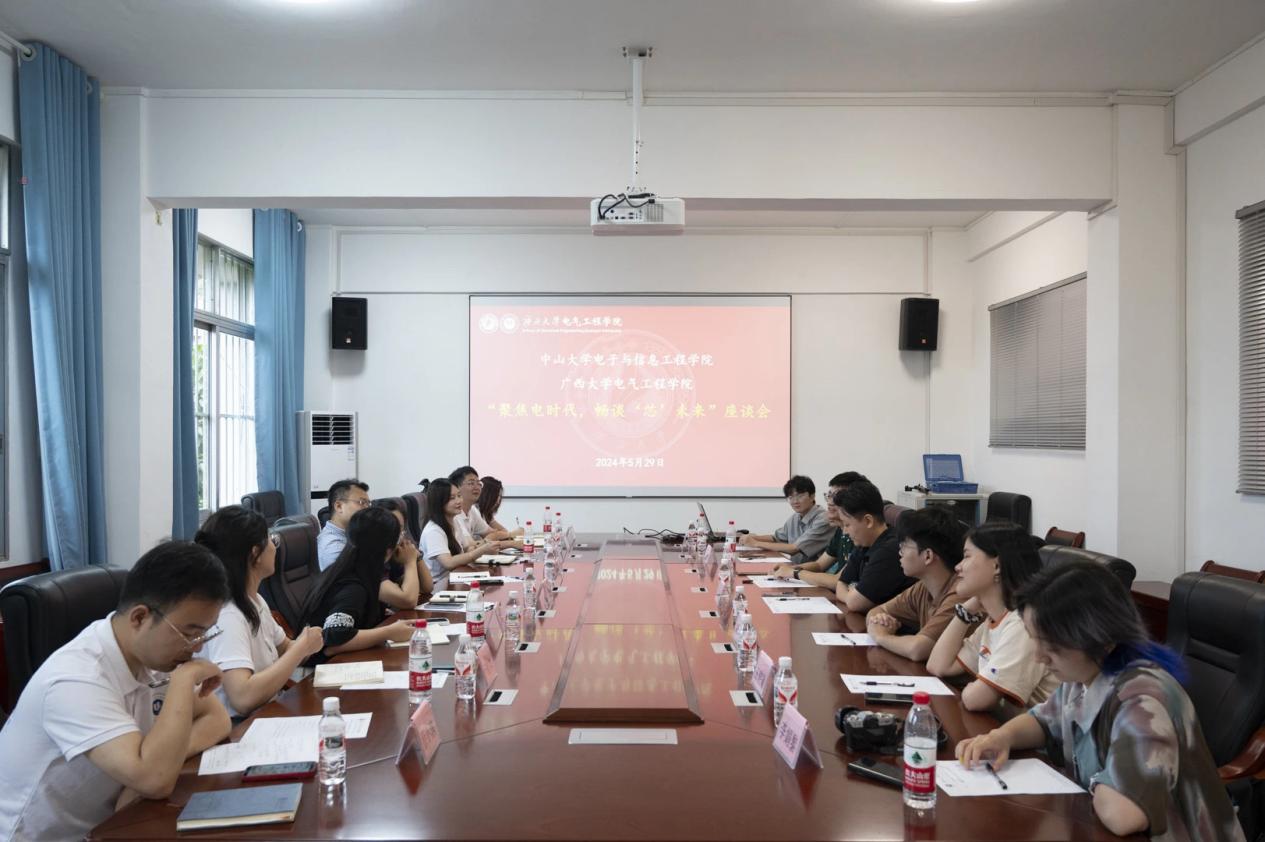 最后,師生們回到廣西大學電氣工程學院315會議室召開“聚焦電時代,暢談‘芯’未來”座談會。會上,兩校師生根據(jù)自己的工作、學習經(jīng)歷,分享學院在人才培養(yǎng)、科學研究、學生服務等方面的建設成果與經(jīng)驗。此外,師生們也就學院的團學活動開展以及學生組織的管理等問題進行深入討論。
