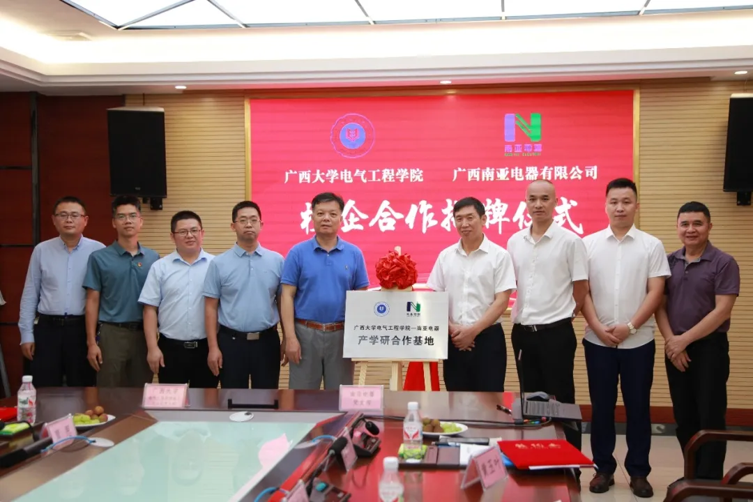 為加強(qiáng)黨建與業(yè)務(wù)深度融合,推動(dòng)產(chǎn)學(xué)研協(xié)同創(chuàng)新,實(shí)現(xiàn)校企攜手共進(jìn)、構(gòu)建高質(zhì)量發(fā)展新格局,6月3日,我院黨委書(shū)記梁志堅(jiān)帶隊(duì)赴廣西南亞電器有限公司(以下簡(jiǎn)稱“南亞電器”)開(kāi)展校企合作簽約暨揭牌儀式。 首先,梁志堅(jiān)書(shū)記一行深入南亞電器生產(chǎn)車間,我院教師結(jié)合課程安排與專業(yè)特長(zhǎng),就技術(shù)問(wèn)題以及新工科課程建設(shè),與南亞電器工作人員交流討論。 座談會(huì)上,雙方圍繞黨建工作、科學(xué)研究、人才培養(yǎng)等方面進(jìn)行了分享交流。南亞電器董事長(zhǎng)蔣學(xué)權(quán)簡(jiǎn)要介紹了南亞電器的發(fā)展歷程與經(jīng)營(yíng)現(xiàn)狀,提出后續(xù)希望與學(xué)院在智能配電、糧食智能倉(cāng)儲(chǔ)等方面開(kāi)展聯(lián)合攻關(guān),加強(qiáng)資源共享,共同培育新質(zhì)生產(chǎn)力,賦能高質(zhì)量發(fā)展。 梁志堅(jiān)書(shū)記表示,近年來(lái),我院高度重視基層黨建工作,積極推動(dòng)黨建和業(yè)務(wù)深度融合,著力打造黨建工作品牌,以高質(zhì)量黨建引領(lǐng)高質(zhì)量發(fā)展,推動(dòng)學(xué)院內(nèi)涵式發(fā)展,為學(xué)院“雙一流”建設(shè)提供堅(jiān)強(qiáng)的組織保障。南亞電器的技術(shù)創(chuàng)新需求與我院很多教師的研究方向高度契合,期待校企雙方以此次交流活動(dòng)為切入點(diǎn),在支部共建、人才培養(yǎng)、科技創(chuàng)新與技術(shù)攻關(guān)等領(lǐng)域加強(qiáng)合作,推動(dòng)黨建與業(yè)務(wù)深度融合,共同譜寫(xiě)校企合作新篇章。 會(huì)議最后,李畸勇副院長(zhǎng)代表我院與南亞電器簽署了產(chǎn)學(xué)研合作協(xié)議,電工與實(shí)驗(yàn)黨支部書(shū)記李深旺與南亞電器黨支部簽訂了黨支部聯(lián)建協(xié)議,梁志堅(jiān)書(shū)記與蔣學(xué)權(quán)董事長(zhǎng)共同為“廣西大學(xué)電氣工程學(xué)院—南亞電器產(chǎn)學(xué)研合作基地”揭牌。 我院副院長(zhǎng)李畸勇、電工與實(shí)驗(yàn)黨支部書(shū)記李深旺,南亞電器總經(jīng)理史濟(jì)敏、黨支部書(shū)記梅仕坤,以及雙方代表共20余人參加活動(dòng)。