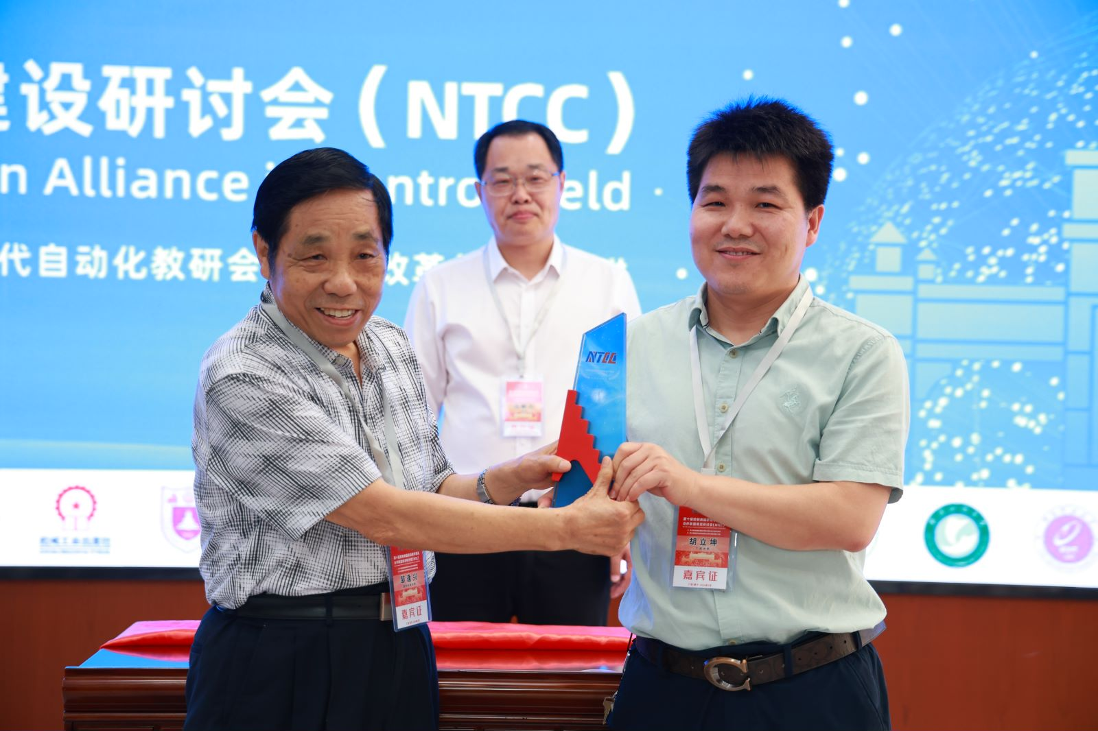開幕式上,校黨委副書記馬獻(xiàn)力與鄒逢興教授共同進(jìn)行了聯(lián)盟徽標(biāo)揭幕,隨后,盟主鄒逢興教授向本次會議承辦的教學(xué)團(tuán)隊(duì)代表胡立坤教授移交聯(lián)盟徽標(biāo)(該徽標(biāo)藍(lán)色主體上的NTCC代表本聯(lián)盟的英文縮寫,散布的小星星代表教學(xué)團(tuán)隊(duì);徽標(biāo)整體設(shè)計(jì)成一艘帆船的樣式,寓意大家同舟共濟(jì),齊心協(xié)力;向上的階梯代表聯(lián)盟發(fā)展得越來越好。)