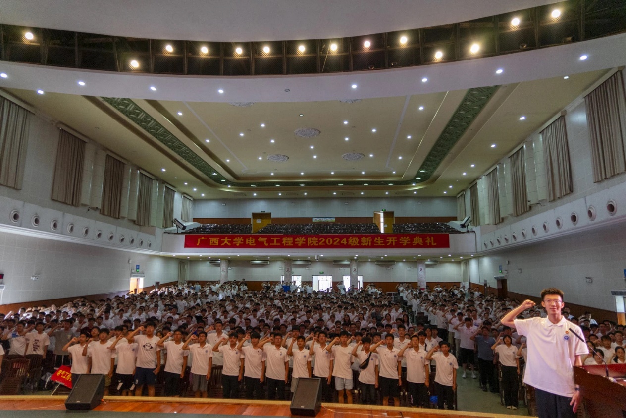 “請(qǐng)黨放心,強(qiáng)國有我!”835名新生在學(xué)院領(lǐng)導(dǎo)老師的共同見證下,舉起右拳,以鏗鏘有力的聲音集體宣誓。