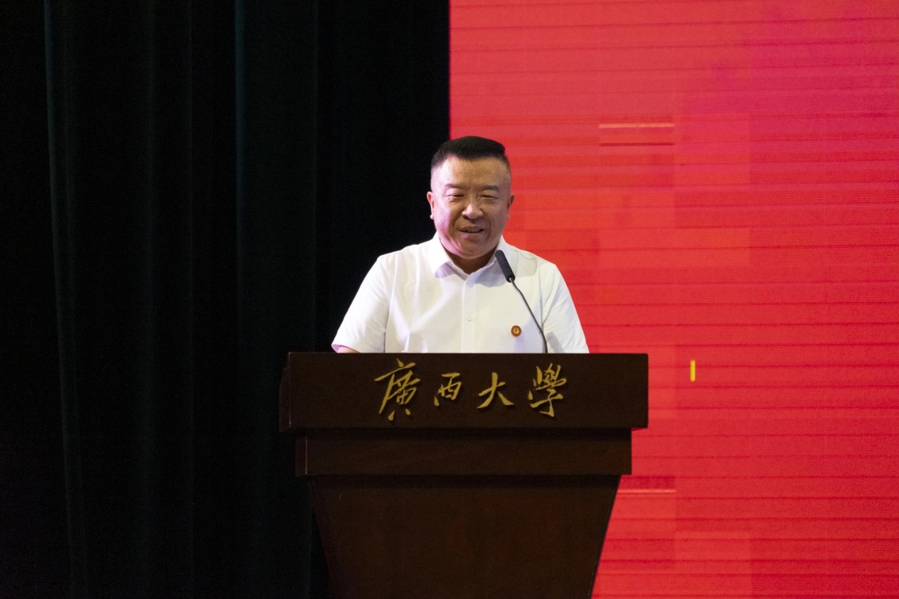 典禮上,學(xué)院領(lǐng)導(dǎo)老師為新生代表佩戴校徽,期望新生弘揚(yáng)“創(chuàng)新創(chuàng)造、奮勇爭(zhēng)先、全面一流”的廣西大學(xué)“雙一流”精神,與新時(shí)代同向同行、共同前進(jìn),努力爭(zhēng)做堪當(dāng)民族復(fù)興重任的時(shí)代新人。