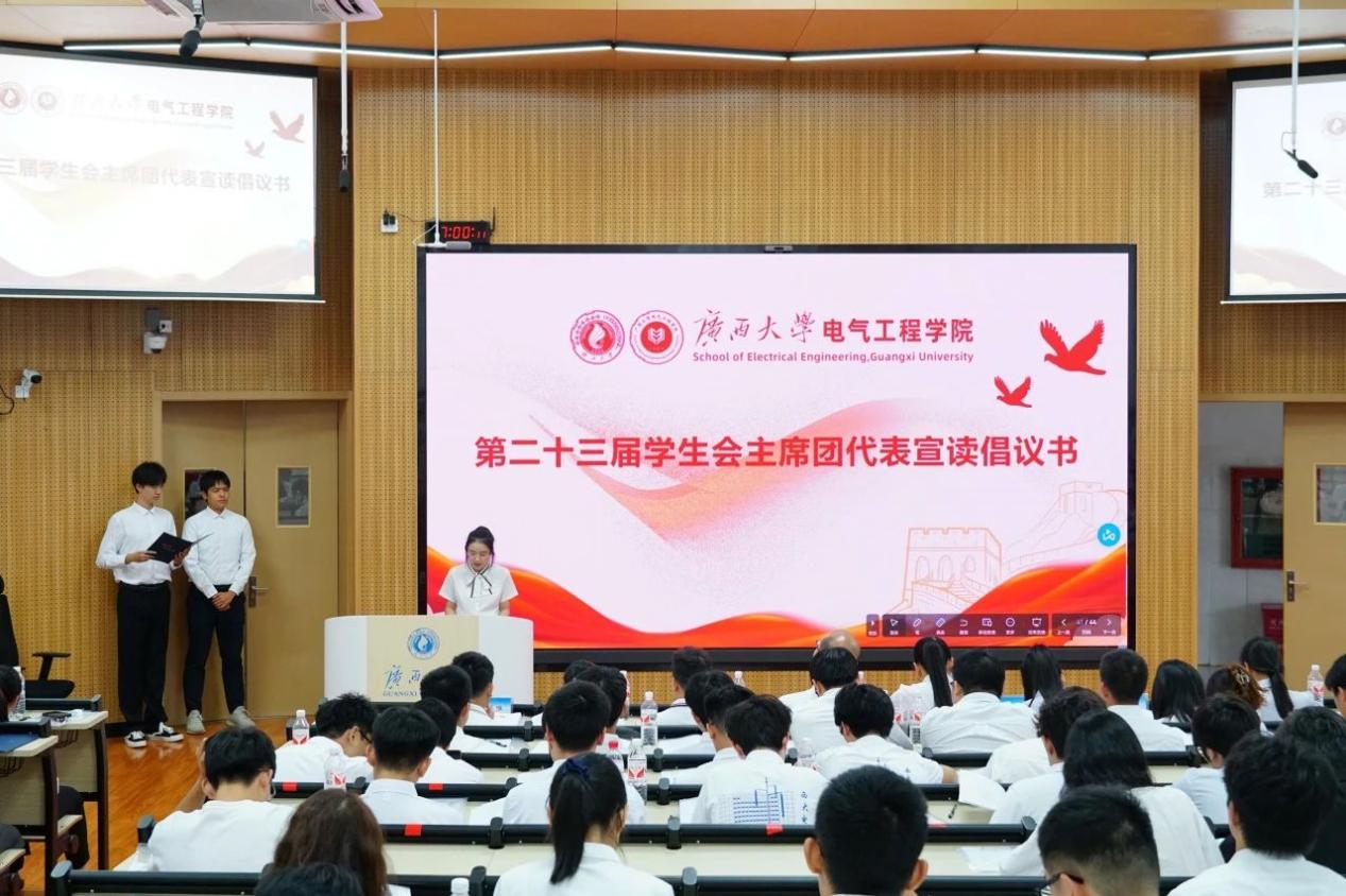 預(yù)備會議階段, 會議聽取《廣西大學(xué)電氣工程學(xué)院第二十三次學(xué)生代表大會代表資格審查報告》、《廣西大學(xué)電氣工程學(xué)院第二十三次學(xué)生代表大會總監(jiān)票人、監(jiān)票人和總計票人、計票人名單》、《廣西大學(xué)電氣工程學(xué)院第二十三屆學(xué)生會主席團選舉辦法》,同時審議通過《廣西大學(xué)電氣工程學(xué)院第二十三屆學(xué)生會主席團候選人的考評、產(chǎn)生經(jīng)過報告》等文件。