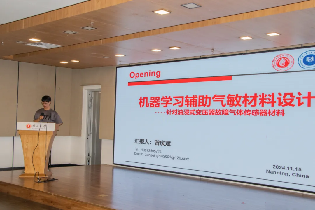 控制工程研233班的曾慶斌同學(xué)介紹了機(jī)器學(xué)習(xí)在氣敏材料設(shè)計(jì)領(lǐng)域的應(yīng)用。針對(duì)油浸式變壓器故障氣體的氣敏材料的設(shè)計(jì)問題,他們團(tuán)隊(duì)使用機(jī)器學(xué)習(xí)方法進(jìn)行輔助,以重金屬二硫化物材料作為研究對(duì)象,通過10種機(jī)器學(xué)習(xí)模型進(jìn)行訓(xùn)練,篩選出3個(gè)效果最佳的模型,成功預(yù)測和篩選出符合要求的新材料,并且在分析過程中引入了新的變量,為傳感器材料的開發(fā)提供了新思路。