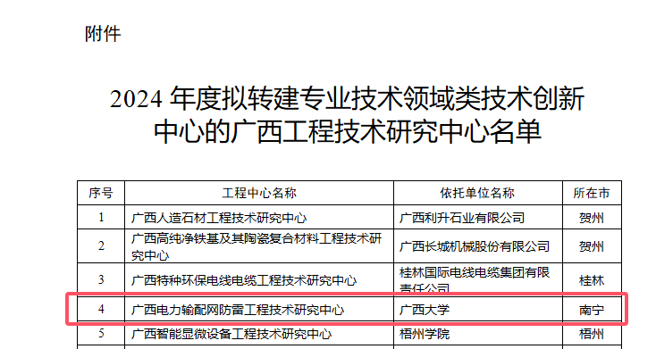 近日,廣西壯族自治區(qū)發(fā)布了2024年度擬轉(zhuǎn)建專業(yè)技術(shù)領(lǐng)域類技術(shù)創(chuàng)新中心的廣西工程技術(shù)研究中心名單,廣西電力輸配網(wǎng)防雷工程技術(shù)研究中心入選,已經(jīng)成功轉(zhuǎn)建為廣西電力輸配網(wǎng)防雷工程技術(shù)創(chuàng)新中心,后續(xù)因研究方向拓展,將更名為廣西電力裝備及系統(tǒng)安全技術(shù)創(chuàng)新中心(以下簡稱“中心”)。該中心以產(chǎn)業(yè)前沿引領(lǐng)技術(shù)和關(guān)鍵共性技術(shù)研發(fā)與應(yīng)用為核心,加強(qiáng)應(yīng)用基礎(chǔ)研究,協(xié)同推進(jìn)現(xiàn)代工程技術(shù)和顛覆性技術(shù)創(chuàng)新,打造創(chuàng)新資源集聚、組織運(yùn)行開放、治理結(jié)構(gòu)多元化的綜合性產(chǎn)業(yè)技術(shù)平臺。中心主要研究廣西復(fù)雜氣候環(huán)境下電力裝備及絕緣材料安全、數(shù)字化防爆電力裝備及系統(tǒng)運(yùn)行安全、電力裝備的在線監(jiān)測和雷電防護(hù)等方向,由廣西壯族自治區(qū)優(yōu)秀專家、我院教授張鐿議擔(dān)任負(fù)責(zé)人。