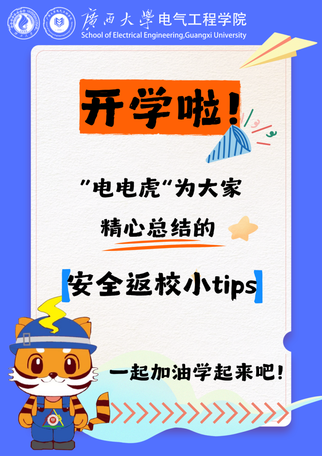 祝電氣學子平平安安返校,