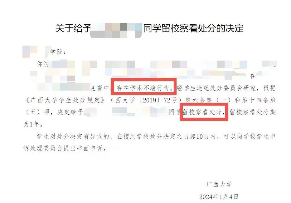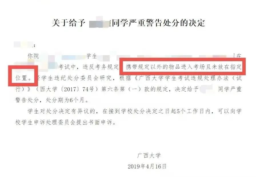 《廣西大學(xué)學(xué)生處分規(guī)定》《廣西大學(xué)學(xué)生考試違規(guī)處理辦法》對學(xué)術(shù)不端行為、考試違規(guī)行為的認(rèn)定和處理有著明確的規(guī)定,視情節(jié)輕重,給予如下紀(jì)律處分: