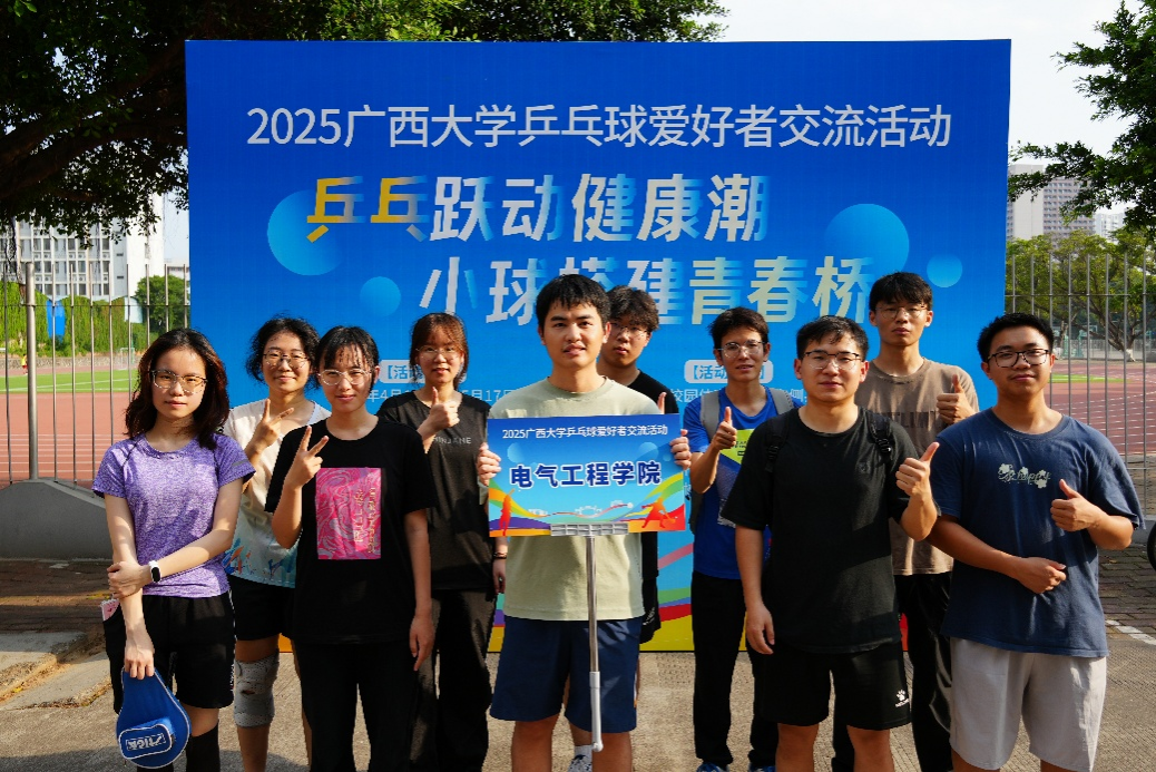 4月19日,2025年廣西大學乒乓球愛好者交流活動在東體育館舉行。共有一名領隊、2名教練員、8名參賽選手參加活動。我院以此次交流活動為契機,成立學院乒乓球運動協(xié)會,為“國球”愛好者搭建交流平臺。