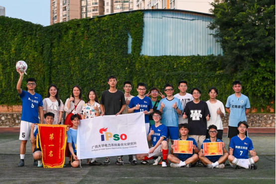 在足球場上,廣西大學(xué)電力系統(tǒng)最優(yōu)化研究所(iPso)的伙伴們盡情揮灑汗水。我們身著統(tǒng)一隊服,在球場上精彩配合——我們就是最優(yōu)的團隊!“第一名” 的錦旗與手中的獎狀熠熠生輝,彰顯著兄弟們的拼搏。從并肩作戰(zhàn)的默契,到收獲榮譽的歡呼,每一幕都是我們青春與奮斗的注腳。