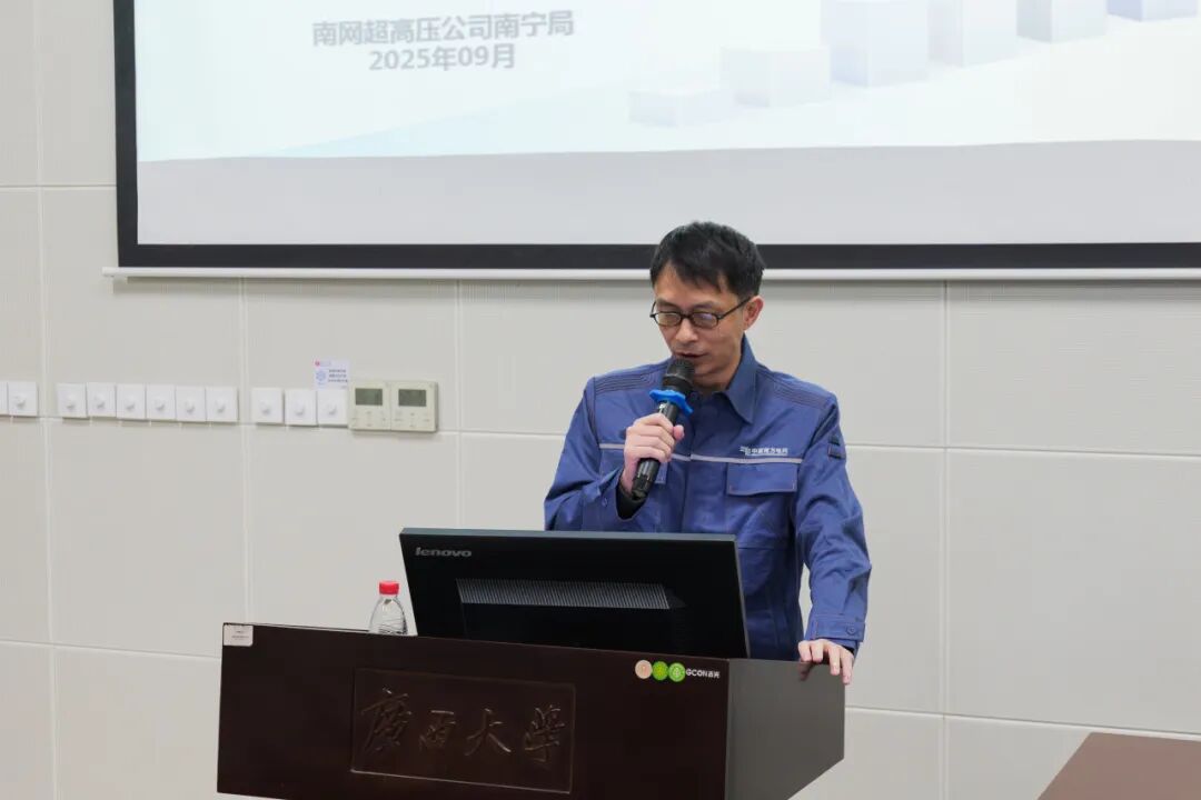 10月24日上午,我院“名師電堂”系列學(xué)術(shù)講座在六二階教室舉行。南方電網(wǎng)超高壓公司南寧局?jǐn)?shù)字化拔尖技術(shù)專家盧英俊高級(jí)工程師、昆明局生產(chǎn)技術(shù)部(生產(chǎn)指揮中心)狀態(tài)監(jiān)測(cè)分析組組長(zhǎng)喬柱橋高級(jí)工程師擔(dān)任主講,我院2024級(jí)、2025級(jí)電氣工程專業(yè)碩士研究生全體參加本次講座。講座由我院電氣工程系主任、學(xué)院iPso研究所所長(zhǎng)陳碧云老師主持。