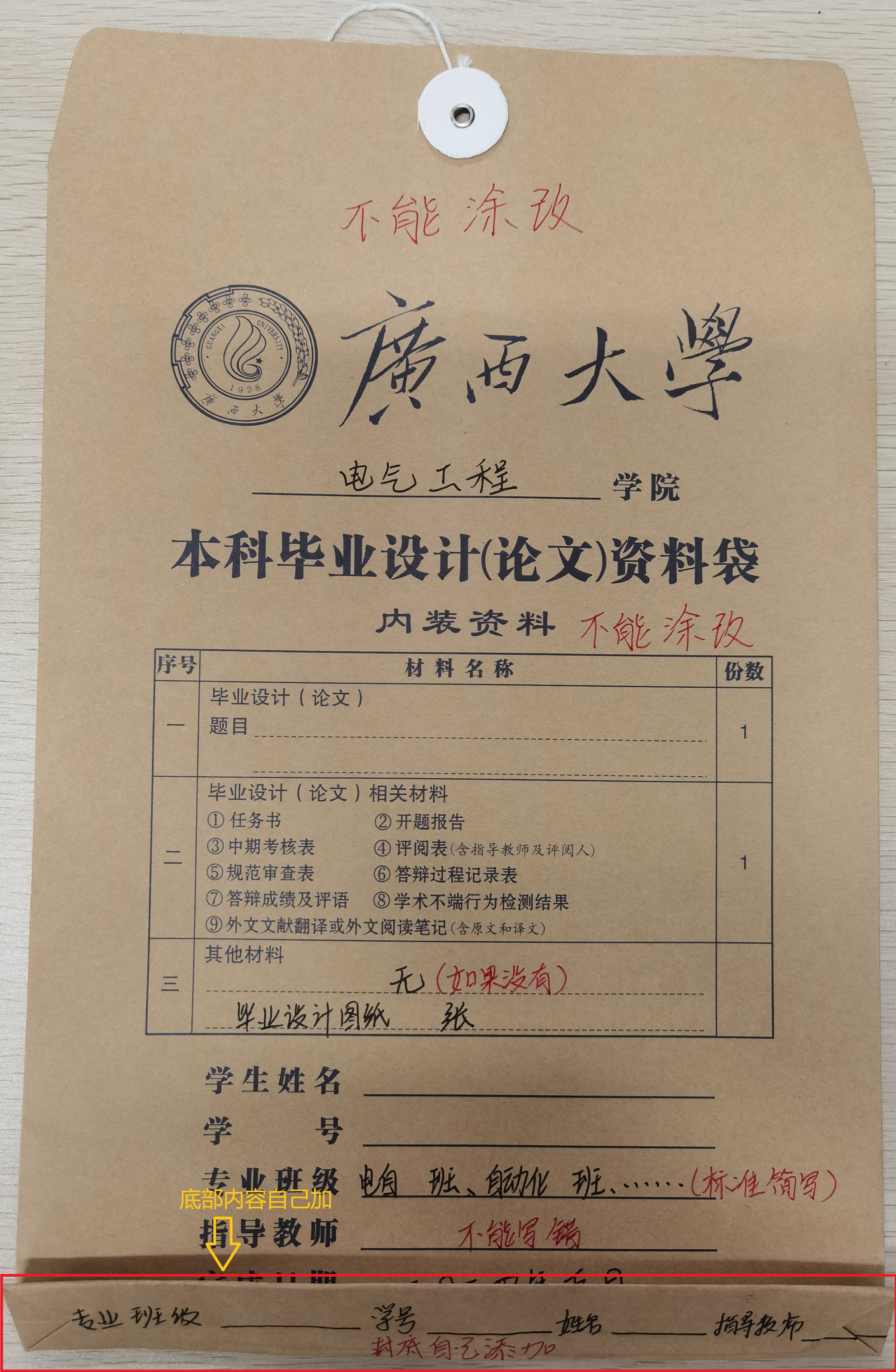 1、各班班長到104領(lǐng)回資料袋,同學(xué)自行整理,裝袋。資料袋封面填寫內(nèi)容不能涂改。