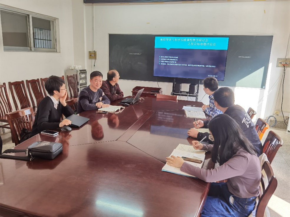 為明確基礎(chǔ)導(dǎo)學(xué)與初步實(shí)踐課程的考試命題原則,加強(qiáng)課程配套資源建設(shè),11月19日下午3點(diǎn)課程組在312舉行了關(guān)于按教學(xué)目標(biāo)命題的討論會(huì)。