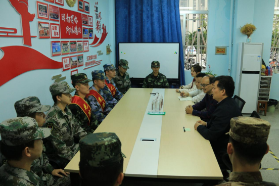 圖2 學(xué)院領(lǐng)導(dǎo)與退伍大學(xué)生親切交流