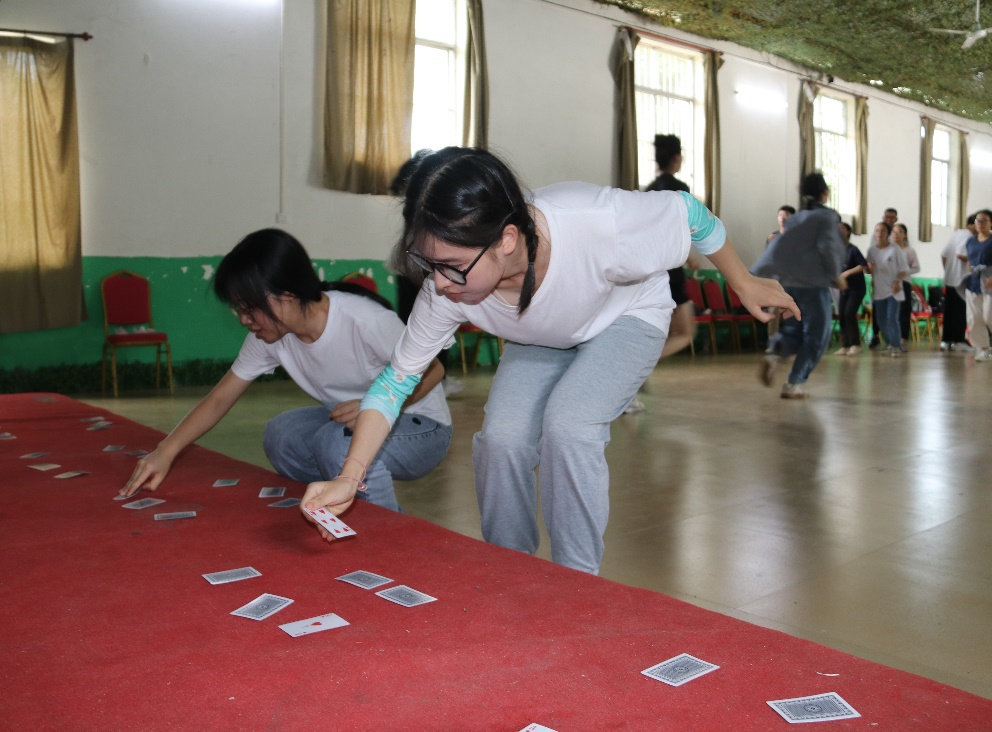迎著朝陽,同學(xué)們到達基地。全體成員被分為6個小組,并分別為各自的隊伍想好了隊名、隊歌以及隊伍的招牌動作,在教官的指導(dǎo)下,開展了“達芬奇密碼”、“雷陣取水”拓展訓(xùn)練活動。“ 單絲不成線,獨木不成林”,在訓(xùn)練過程中,各小組團隊協(xié)作,相互配合,遵照既定的思緒和戰(zhàn)術(shù)計謀,增進了彼此的信任與默契,提升了團隊凝聚力和團隊協(xié)作精神。