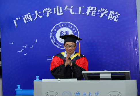 畢業(yè)研究生代表黃乾博士在畢業(yè)感言中,回顧了從本科、碩士再到博士在電氣工程學院的青春年華,表達了對學院老師們辛勤培育的由衷感恩之情,并表示在新的征程里,將以滿腔的熱情,去服務(wù)社會、實現(xiàn)自我。