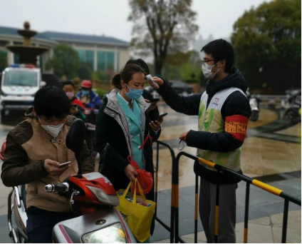 圖1:黃昊為小區(qū)進(jìn)出人員測(cè)量體溫