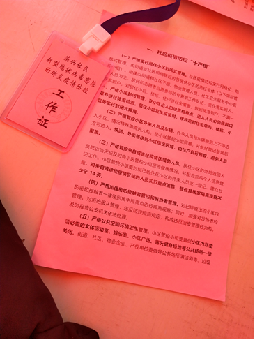 黎亞身為班長,一邊積極配合學(xué)院的工作,一邊參加志愿服務(wù)工作。在我們談到假期她為什么沒有選擇在家里學(xué)習(xí)和做自己喜歡的事情,而是選擇冒著被感染的危險(xiǎn)去參加社區(qū)抗疫志愿服務(wù)時(shí)黎亞表示:“因?yàn)樽罱恢痹诩依铮刻炜粗侣勥€有微博各種熱搜就覺得還是挺揪心的,看到社區(qū)有工作人員到每家每戶登記住戶信息,然后聽說有這個(gè)活動就參加了。”沒有一點(diǎn)猶豫,沒有一點(diǎn)遲疑,只是聽說有志愿服務(wù)活動,便義無反顧的投身到抗疫路上。黎亞用自己的行動,實(shí)踐著“天下興亡,匹夫有責(zé)”的擔(dān)當(dāng)。
