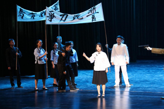 A:我們這個話劇是根據(jù)網(wǎng)絡(luò)上的話劇改編而來的,把話劇中的歷史故事與現(xiàn)實中的事情相結(jié)合,體現(xiàn)出歷史事件對同學(xué)們的思想啟發(fā)。