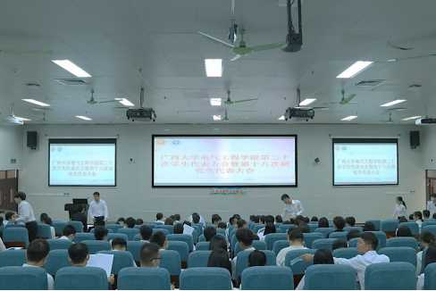 10月12日下午,廣西大學(xué)電氣工程學(xué)院第二十次學(xué)生代表大會(huì)暨第十八次研究生代表大會(huì)、第二次眾創(chuàng)空間學(xué)生代表大會(huì)在第六教學(xué)樓六二階報(bào)告廳召開。學(xué)院黨委副書記梁志堅(jiān)、學(xué)院團(tuán)委書記石建有,以及學(xué)工組全體輔導(dǎo)員、眾創(chuàng)空間指導(dǎo)老師李勇,研究生會(huì)、學(xué)生會(huì)代表,眾創(chuàng)空間代表、各班級(jí)代表共112名學(xué)生代表參加了本次大會(huì)。