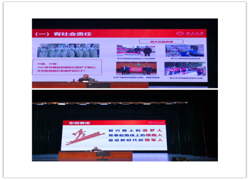 3.12月1日下午,學工組組織全體輔導員、2020級新生在第六教學樓參加校黨委書記劉正東給全體新生上形勢與政策課。劉書記以《學好用好黨的十九屆五中全會精神 勇做新時代“五有”領軍型人才》為題,縱論我國現代化與西方現代化的歷史過程,以及我國現代化建設的歷史奇跡;同時展望五中全會描繪的宏偉前景,引導大家把人生過程與我國社會主義現代化建設的進程對標,努力成為新一代全面發(fā)展的超硬核的“五有”領軍型人才。