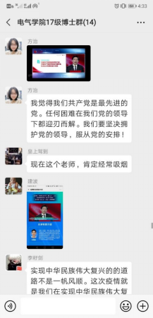17級(jí)覃建波博士:今天下午,我準(zhǔn)時(shí)通過(guò)手機(jī)觀看學(xué)習(xí)防控疫情思政網(wǎng)絡(luò)大課,通過(guò)本次防控疫情思政課的學(xué)習(xí),我有以下一些認(rèn)識(shí)和感想:
