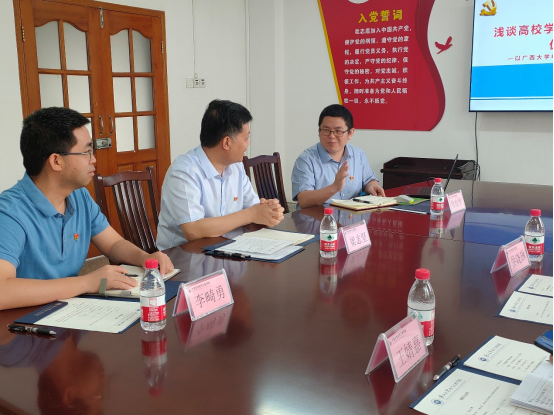 活動(dòng)開始,由廣西大學(xué)電氣工程學(xué)院黨委書記梁志堅(jiān)介紹學(xué)校和學(xué)院概況。梁志堅(jiān)書記首先為來訪人員介紹了廣西大學(xué)悠久的歷史,學(xué)校由“北蔡南馬”中的馬君武創(chuàng)建,從建校開始經(jīng)歷多年風(fēng)雨,學(xué)校仍然蓬勃發(fā)展,電氣工程學(xué)院正是其中一個(gè)重要推動(dòng)力,從1938年到現(xiàn)在,學(xué)院專業(yè)學(xué)科不斷發(fā)展進(jìn)步,培養(yǎng)了很多優(yōu)秀的學(xué)者。同時(shí),在眾多黨員教師的模范和引領(lǐng)作用下,學(xué)院取得了諸多的獎(jiǎng)項(xiàng)和獎(jiǎng)勵(lì),也獲得很多重大的成果。