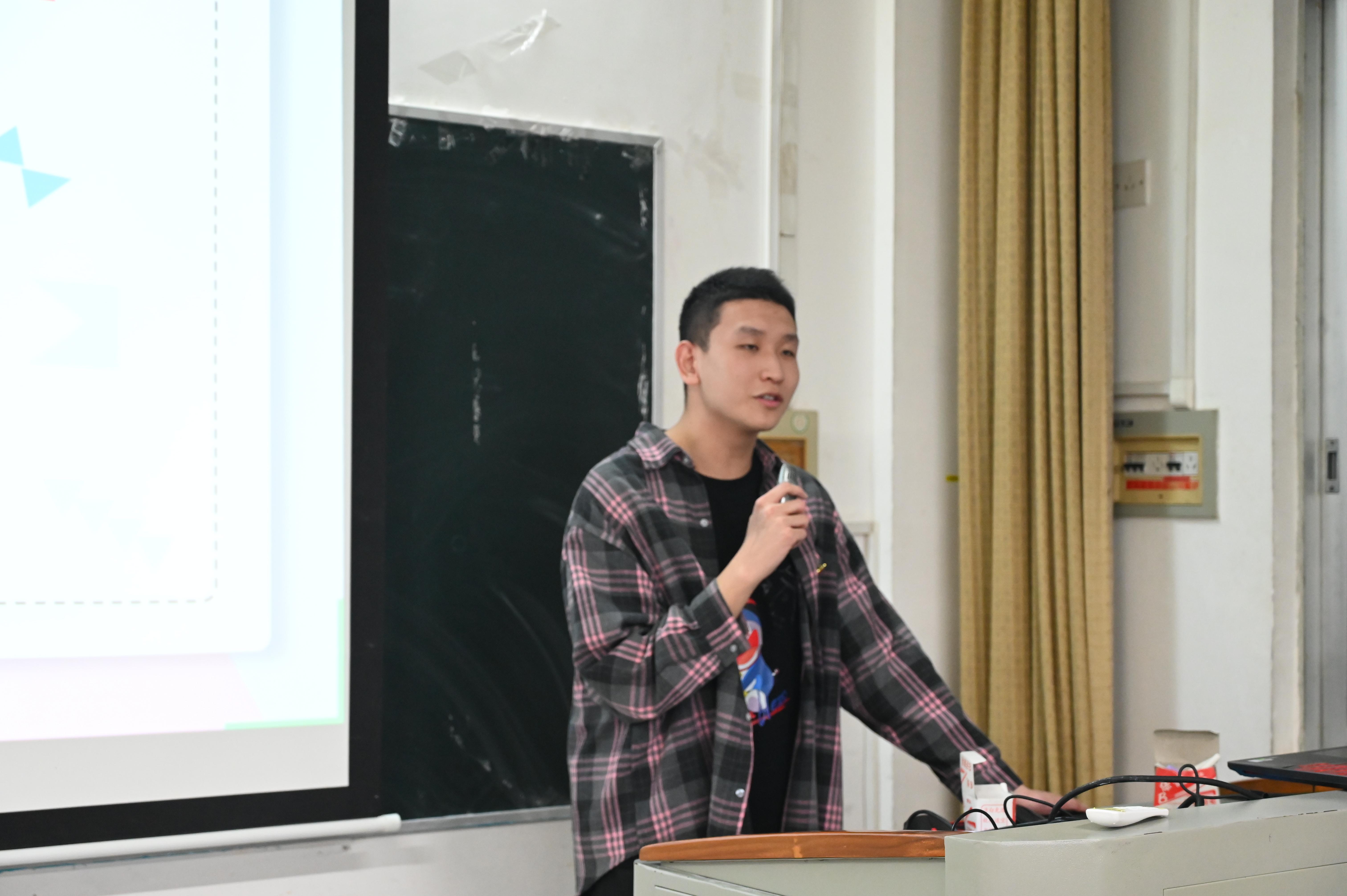 圖4 盧陽(yáng)旭分享科研項(xiàng)目經(jīng)驗(yàn)