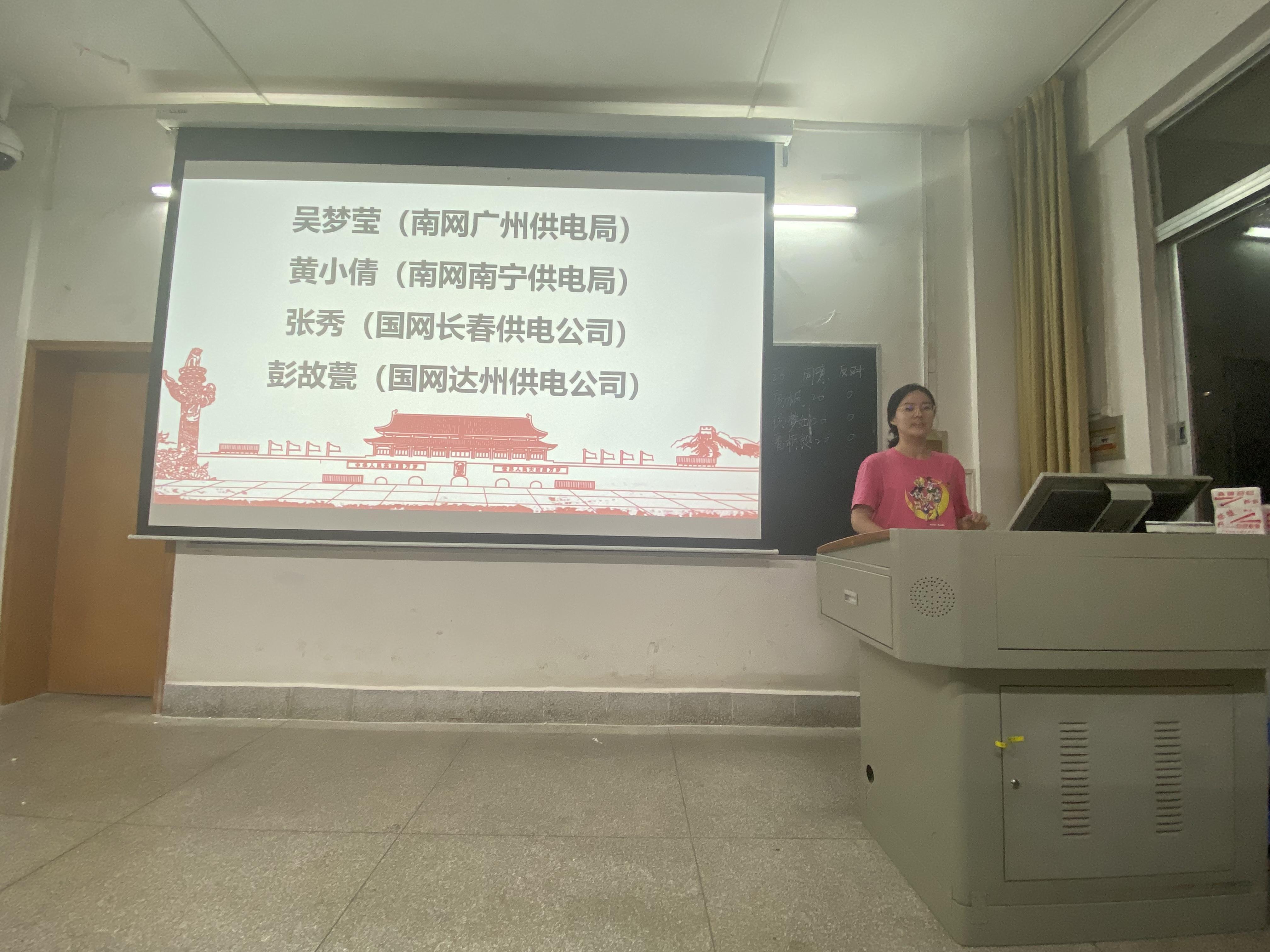 張秀同志已簽約國家電網(wǎng)長春供電公司,與我們分享了她在武漢大學(xué)參加吉林電網(wǎng)校招時的經(jīng)歷和心路歷程。她談到當(dāng)天的面試者僅有8名,競爭其實(shí)并不是很激烈,以自身的實(shí)際經(jīng)歷勉勵我們,鍛煉個人能力,篤定自身目標(biāo),打磨個人簡歷,其實(shí)就業(yè)并不會有想象中那么困難重重。