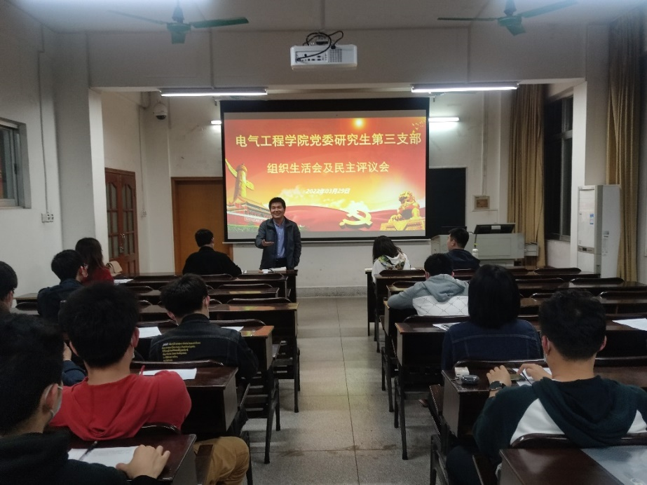 為深入學習貫徹黨的十九屆六中全會精神,不斷推進黨的建設新的偉大工程,2022年3月29日晚,廣西大學電氣工程學院研究生第三黨支部組織開展了黨支部組織生活民主評議黨員大會與研究生黨員素質教育活動。支部黨員34人參加本次活動,由支部委員羅尹政負責主持工作,胡立坤副院長蒞臨現(xiàn)場觀摩。