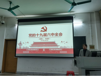 十九屆六中全會(huì)是中國(guó)共產(chǎn)黨的一次重要會(huì)議,為加強(qiáng)支部黨員的政治理論素養(yǎng),傳達(dá)六中全會(huì)精神,支部書記韋俞妃給支部黨員作了《堅(jiān)定理想信念,補(bǔ)足精神之鈣——學(xué)習(xí)十九屆六中全會(huì)精神》的主題黨課。