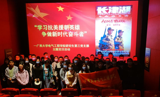 2021年是中國共產(chǎn)黨成立100周年,新中國成立72周年,也是中國人民志愿軍抗美援朝出國作戰(zhàn)71周年,為深入推進(jìn)“不忘初心、牢記使命”“請(qǐng)黨放心、強(qiáng)國有我”的主題教育,響應(yīng)習(xí)近平總書記關(guān)于學(xué)好“四史”的指示精神,加強(qiáng)青年愛國主義教育,提高青年愛國主義熱情和對(duì)革命先烈的崇敬之情,10月23日晚,電氣工程學(xué)院研究生第三黨支部組織開展“學(xué)習(xí)抗美援朝英雄,爭(zhēng)做新時(shí)代奮斗者”主題的《長(zhǎng)津湖》紅色觀影活動(dòng),學(xué)習(xí)偉大的抗美援朝精神,緬懷為保家衛(wèi)國犧牲的革命先輩,支部?jī)?nèi)黨員同志和積極分子共計(jì)34人參與了本次活動(dòng)。