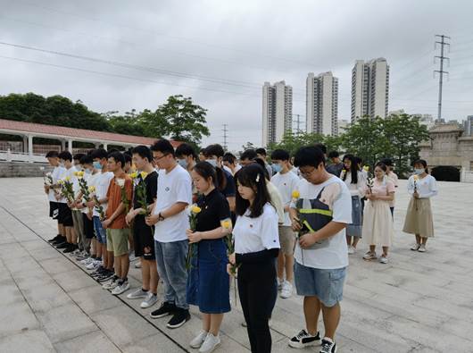 本次黨日活動(dòng)的第一站為廣西壯族自治區(qū)烈士陵園。在陵園內(nèi),全體黨員向在廣西發(fā)展過(guò)程中英勇獻(xiàn)身的先輩們和以袁隆平、吳孟超兩位院士為代表的為國(guó)家發(fā)展做出巨大貢獻(xiàn)的已逝前輩們默哀、鞠躬和敬獻(xiàn)鮮花。黨支部書記李娟老師現(xiàn)場(chǎng)上黨課,為大家簡(jiǎn)單介紹埋葬在此的先輩們的事跡。