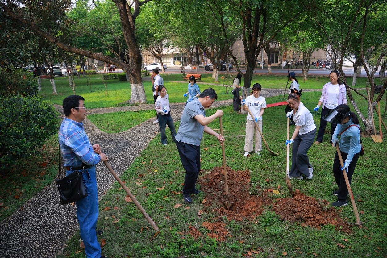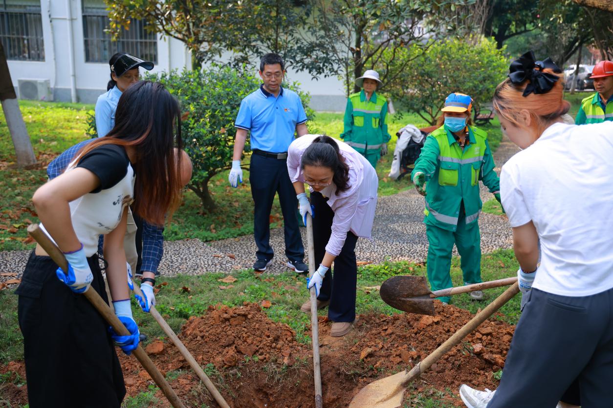 經(jīng)過大家共同努力,樹木扎根在沃土里,迎風(fēng)挺立,“黨建‘紅’”和“生態(tài)‘綠’”交相輝映,成為春日校園里一道亮麗的風(fēng)景線。